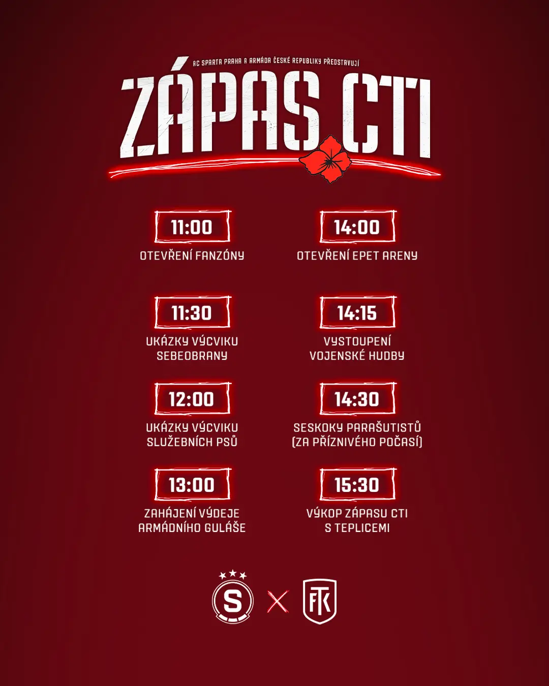 Fanzóna otevře své brány v 11:00, tedy čtyři a půl hodiny před výkopem utkání s Teplicemi. V areálu na Letenské pláni budou vystaveny armádní motorky, obrněná vozidla IVECO, TITUS a DINGO, nebo kanónová houfnice DANA. Návštěvníci si budou moci prohlédnout také zbraně RBS-70 a RPG CARL GUSTAV.
