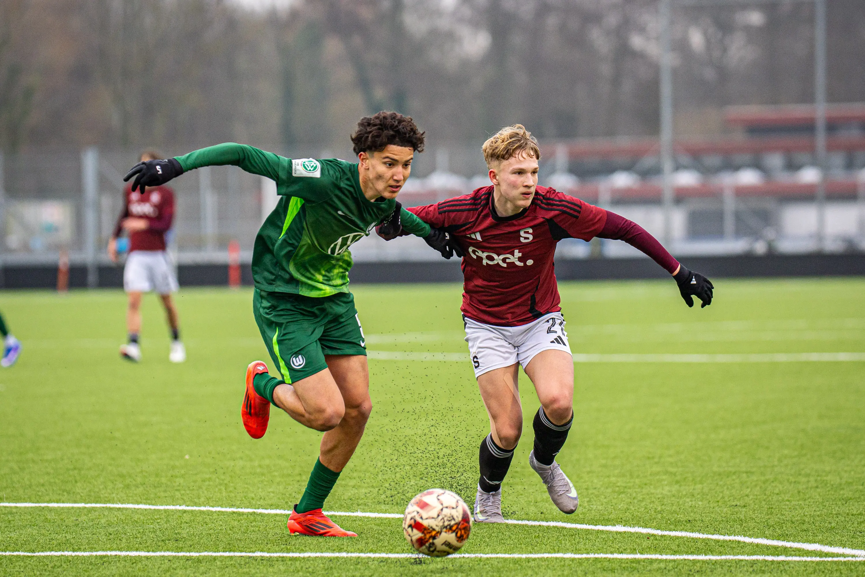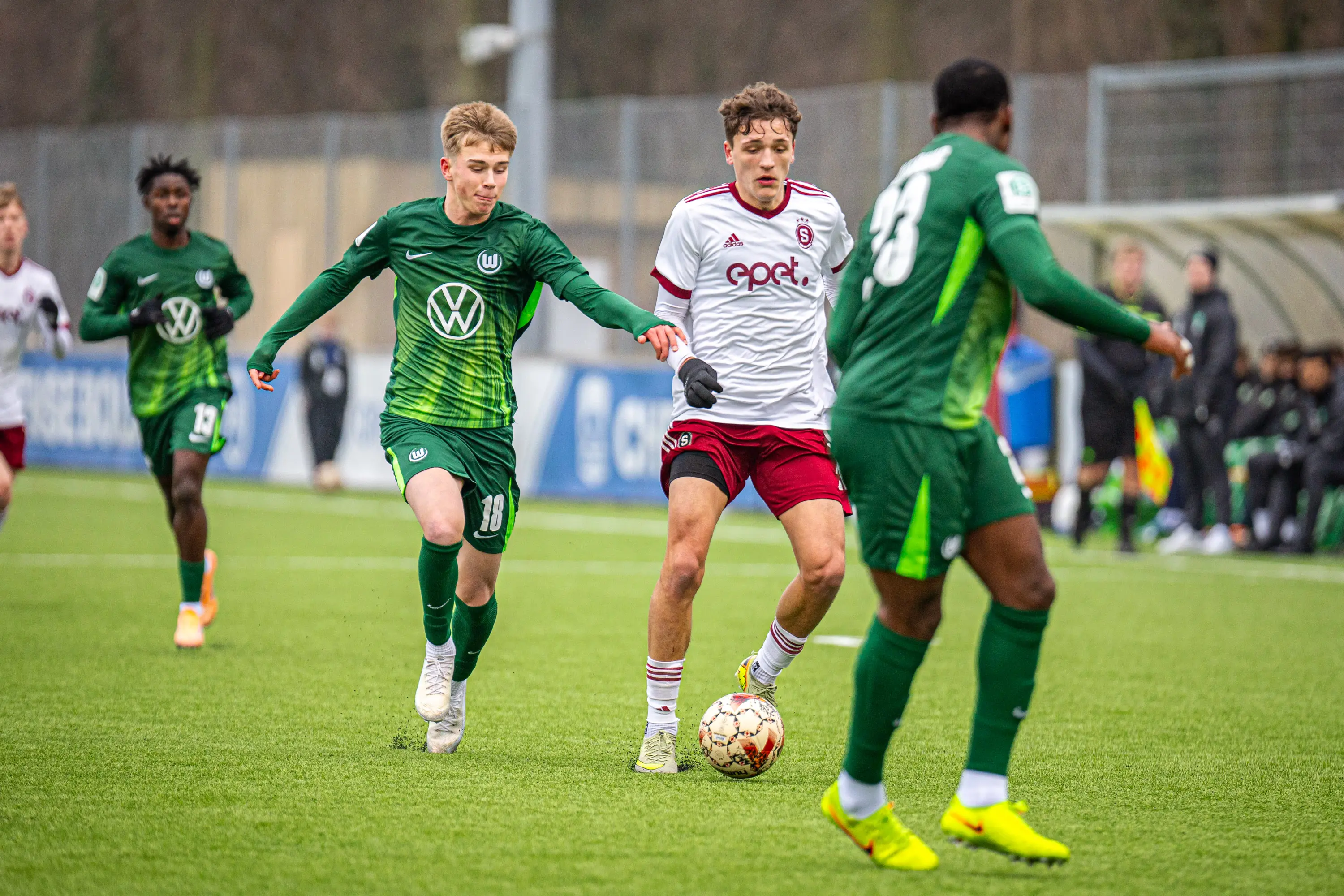 Po poločasovém prostřídání přišla ihned první branka v utkání do naší sítě. Sparťané se ale nesložili. V 69. minutě skvěle napadal brankáře Wolfsburgu při rozehrávce Jakub Šimáček. Ten získal míč pro Irinda Zelku, který střelou do prázdné vyrovnal. O šest minut později bylo v Odense ještě veseleji, když přesnou přihrávku Průši zužitkoval Hrodek. Hosté v závěru zkoušeli štěstí z rohů, k vyrovnání ale nedošlo. Sedmnáctka tak ve druhém utkání získala první tři body na turnaji.