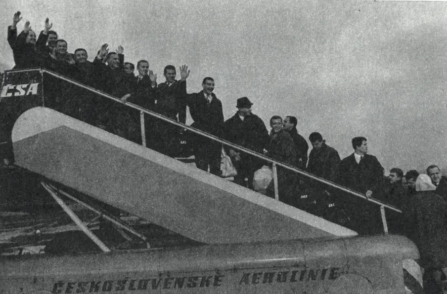 Výstupem z letadla však trápení sparťanské výpravy nekončilo. „Drželi jsme se vší silou kymácejících se přistavených schodů a padali po nich dolů. Byl takový vichr, že ani na zemi jsme se neudrželi na nohou a navíc šlehal prudký sníh. Byli jsme unavení, doslova zdrchaní. Čekali na nás vyděšení čeští krajané, kteří si oddechli, že jsme konečně na zemi. Odvezli nás na štědrovečerní posezení do české restaurace. Bledí a vystrašení jsme dlouho nemohli nic jíst. Postupem času jsme si však začali povídat o životě v Praze, o příšerném letu a snědli jsme i výborný řízek,“ usmíval se Václav Mašek.