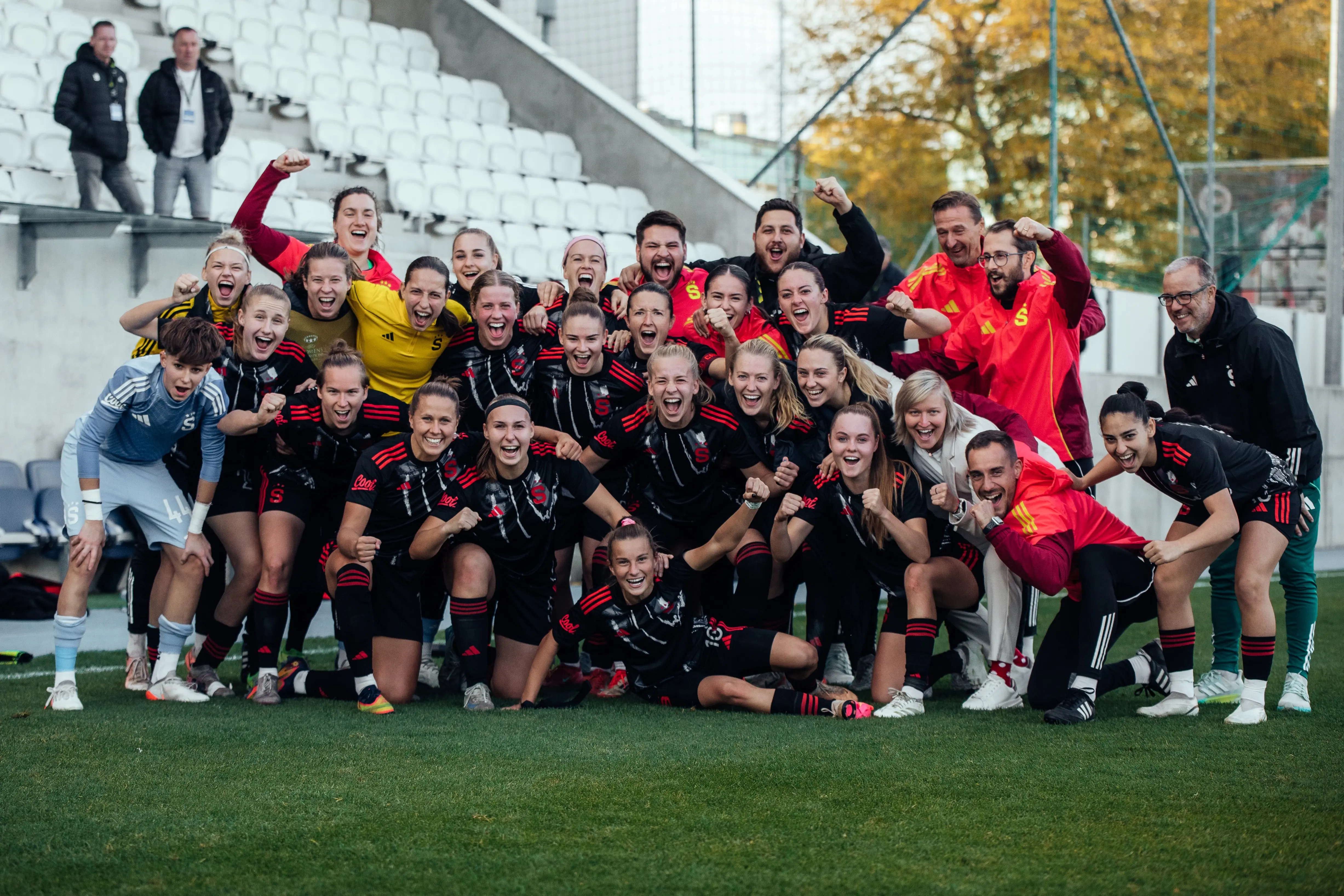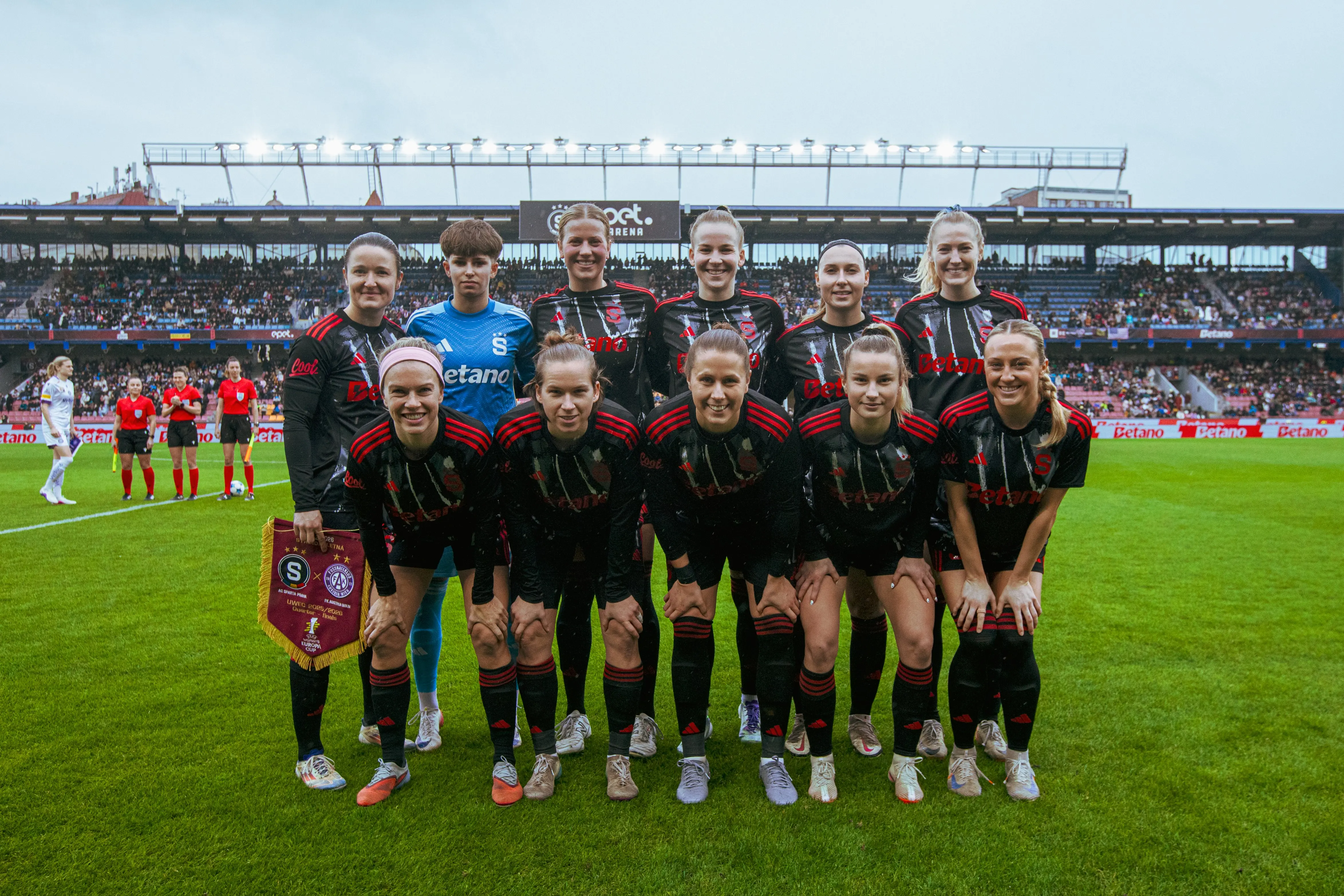 Bez branek se hrálo i ve Vídni až do 70. minuty, kdy si Stárová připravila střelu nad vápnem a trefila levý horní roh domácí branky. Rychlé srovnání přišlo z rohu o dvě minuty později. Čtvrtfinále tak šlo do prodloužení. V něm si na centr Khýrové ve vápně naskočila Bergford a Sparta opět vedla. Třetí gól sparťanek přidala v nastavení prvního poločasu prodloužení Khýrová. Sparta po 120 minutách boje odjížděla z Vídně s historickým postupem do semifinále.